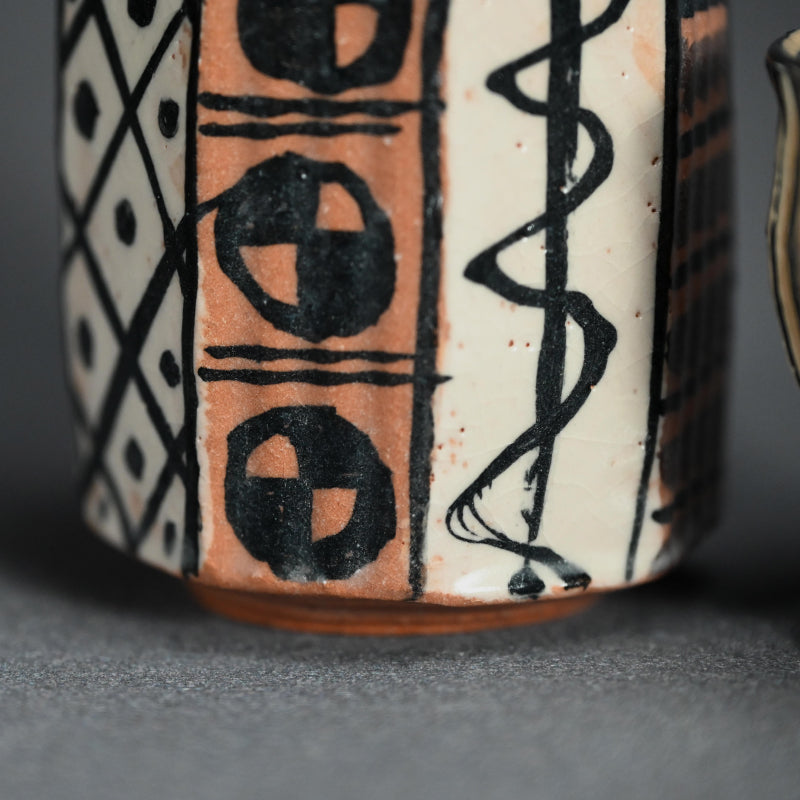 Playful Aka-Oribe Sake Set ー利茶土 ミルグリム “AKA ORIBE SAKE CUP”, “AKA ORIBE TOKKURI”