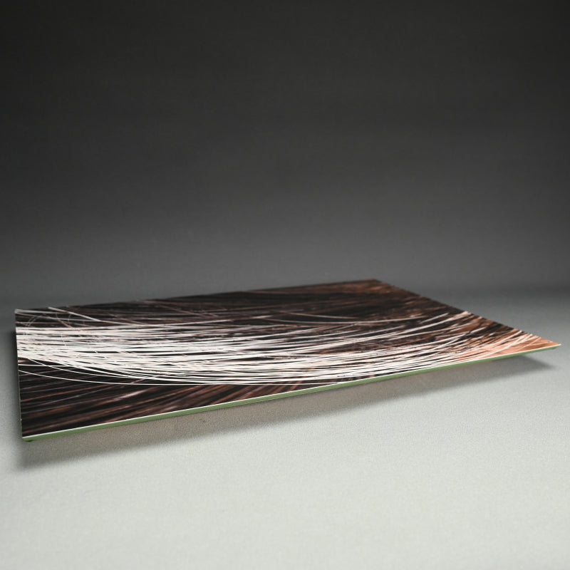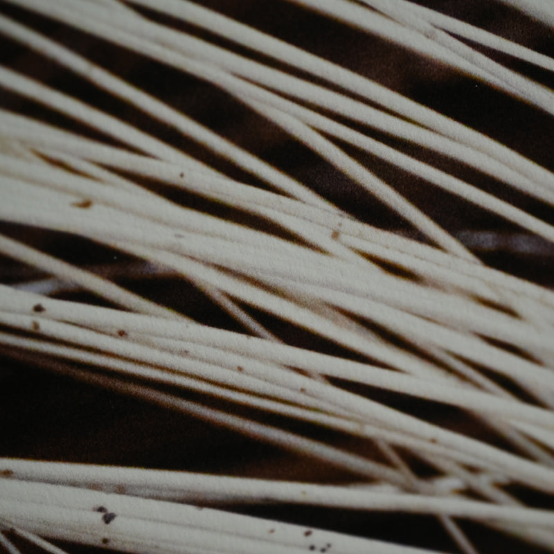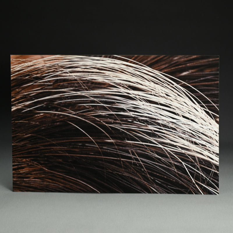 An extreme photograph of porcupine quills mounted as a hanging panel by Horitani Shoichi signed on back and numbered 1/15. It is 54.5 x 36.5 x 3 cm (22 x 14-1/2 x 1 inches) and is in perfect condition, mounted on a wooden panel elevated from the wall.