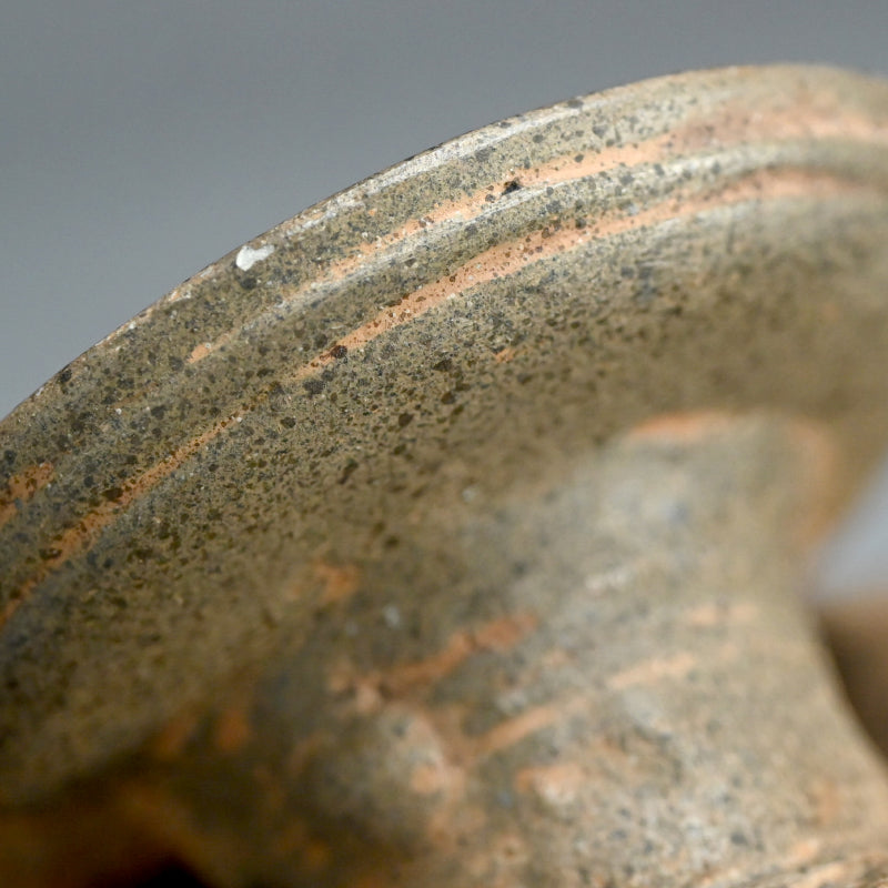 Tokoname pottery from modern day Aichi Prefecture, is one of Japan’s Six Ancient Kilns (Nihon Rokkoyō), with a history dating back to the Heian period (794–1185). Initially, Tokoname potters produced large, durable storage jars and water vessels, utilizing locally abundant iron-rich clay and high-temperature firing techniques. The region's extensive use of anagama (single-chamber) and later noborigama (climbing) kilns contributed to its flourishing as a major ceramics center. During the Kamakura (1185–1333) and Muromachi (1336–1573) periods, Tokoname ware was exported all over the Japanese archipelago, and served as the prototype for pottery from most of the other ancient kilns.