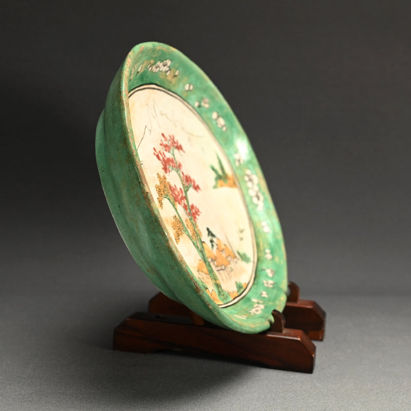 Rare! Awaji yaki Plate ー賀集 珉平 “淡路焼 色絵山水文皿”
