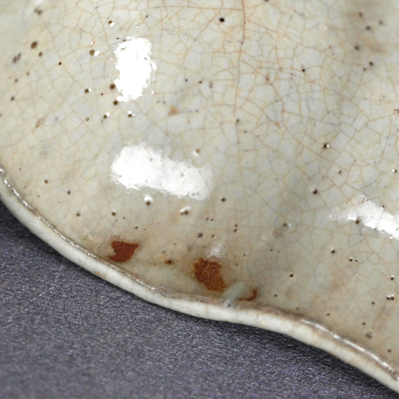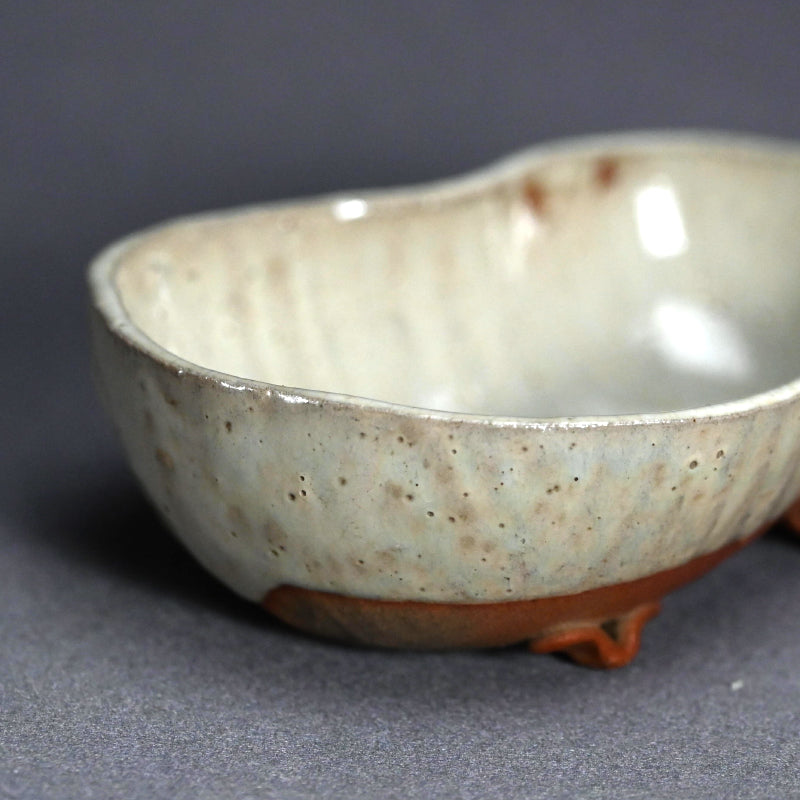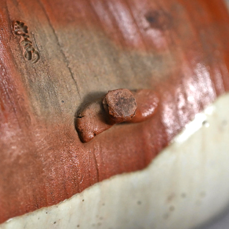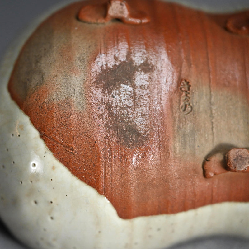 During the mid-Edo period, a distinctive type of white Bizen ware was produced—so rare today that surviving examples are often referred to as “phantom white Bizen” (maboroshi no shiro-Bizen). Broadly speaking, two main varieties of shiro-Bizen exist. The earliest type was inspired by the translucent white porcelain of Shizutani ware, also made in Bizen City, and was coated with a semi-transparent white glaze. Later, potters began producing unglazed versions in the true Bizen tradition, achieving a pale surface tone by using iron-poor clay and high-temperature firing to bring out the natural whiteness of the body. Because production lasted only a short time and techniques varied among individual potters, authentic examples are extremely rare. The precise methods have not been fully documented, and modern potters continue to experiment in attempts to recreate the elusive beauty of white Bizen.