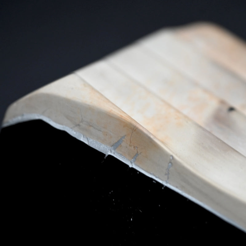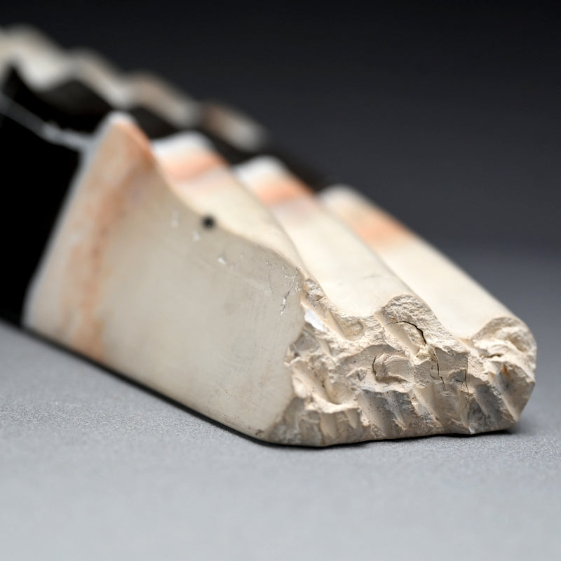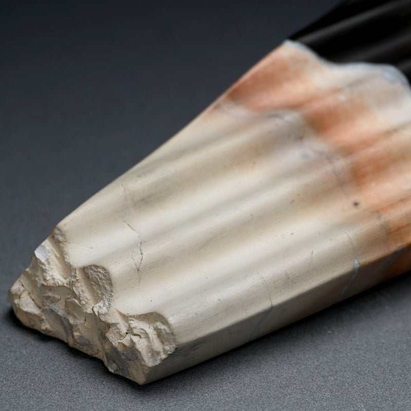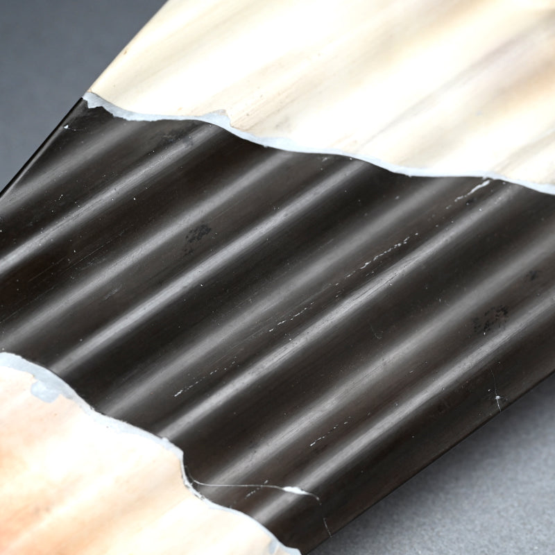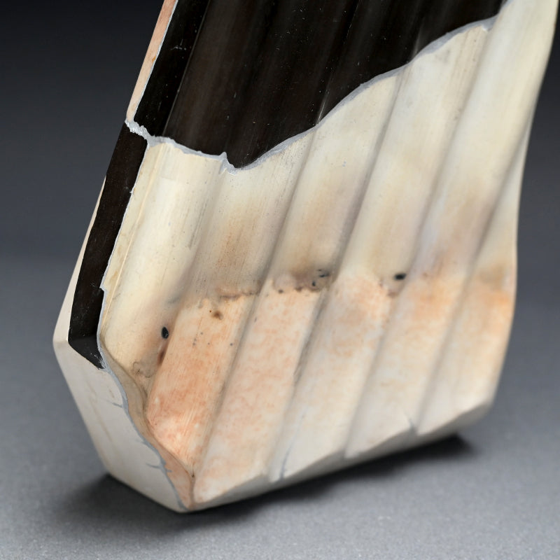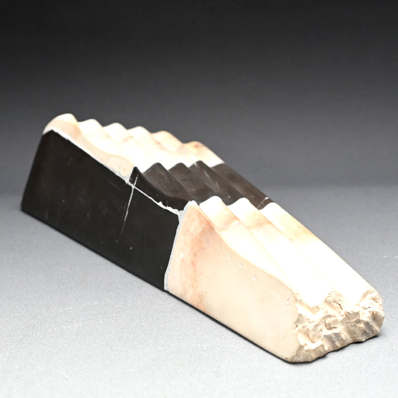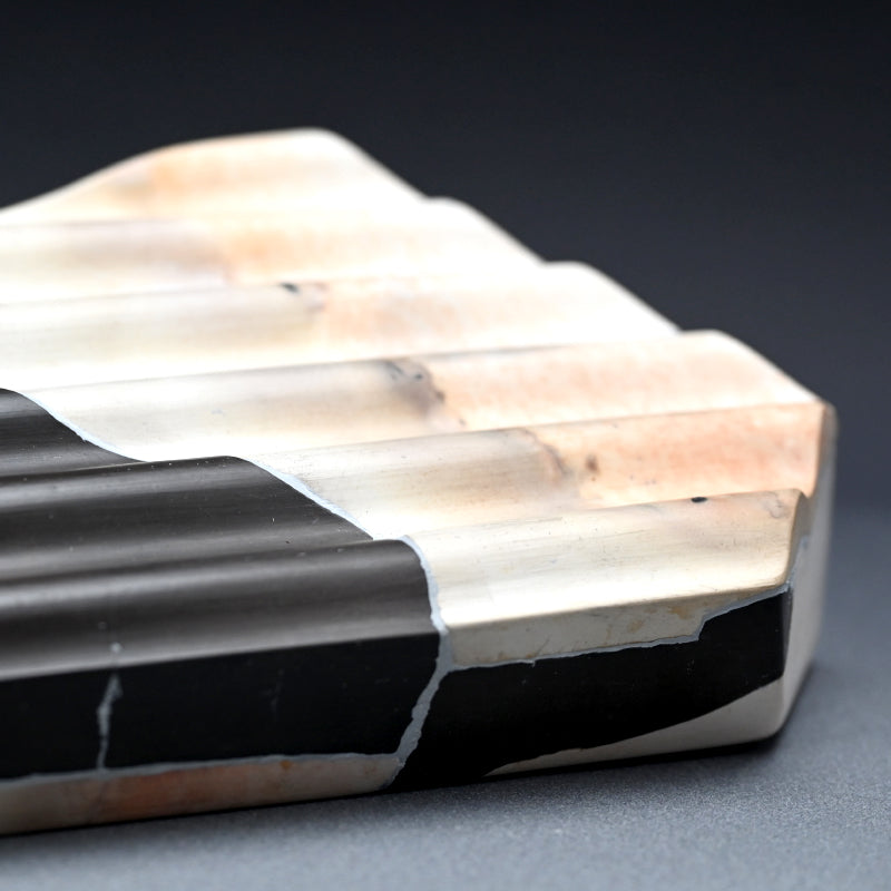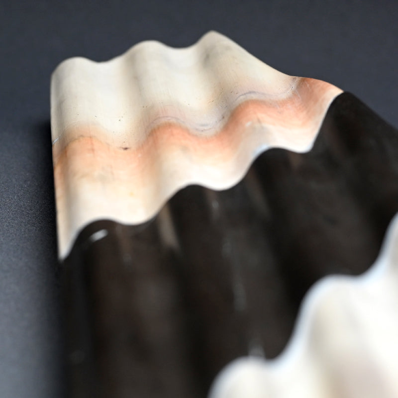A Re-creations Sculpture like a standing shard of corrugated steel ripped up by the wind by Yorigami Munemi. It is 11 x 18.5 x 43 cm (4-1/2 x 7-1/4 x 17 inches) and in fine condition.