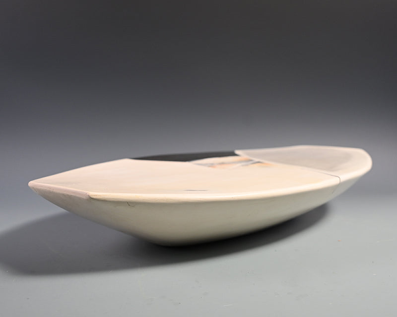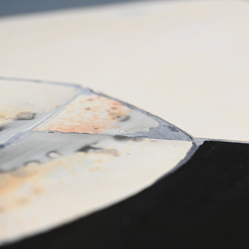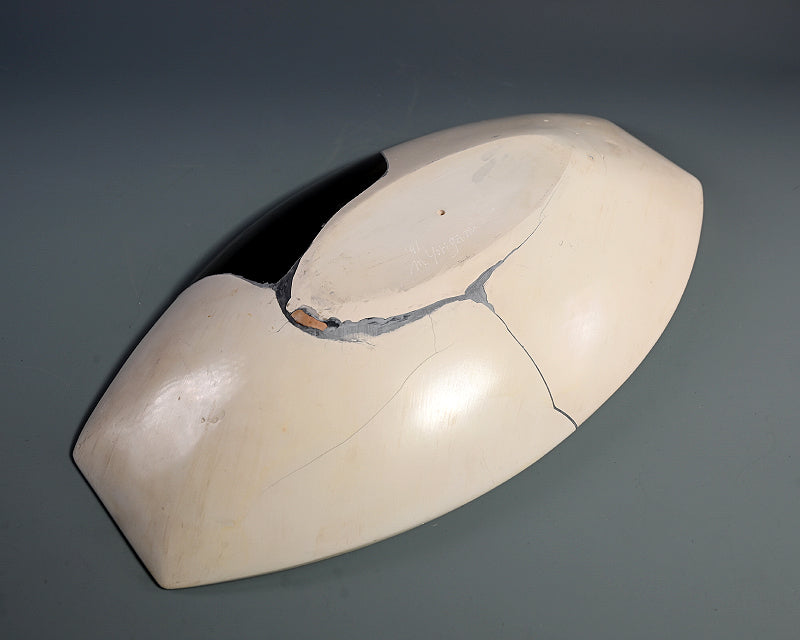 A sculpture of assembled ceramic shards by Yorigami Munemi in mottled moon colors enclosed in the original signed wooden box titled RE:CRATIONS, Banki (Disc). It is 52.5 x 31.5 x 8.5 cm (21 x 12-1/2 x 3 inches) and in fine condition.