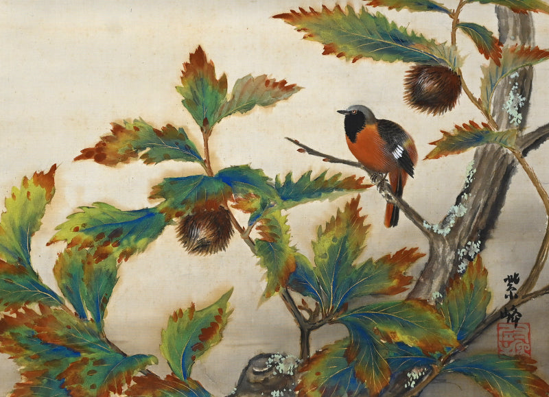 Red Breasted Bird in Chestnut by 榊原 紫峰 “秋色”