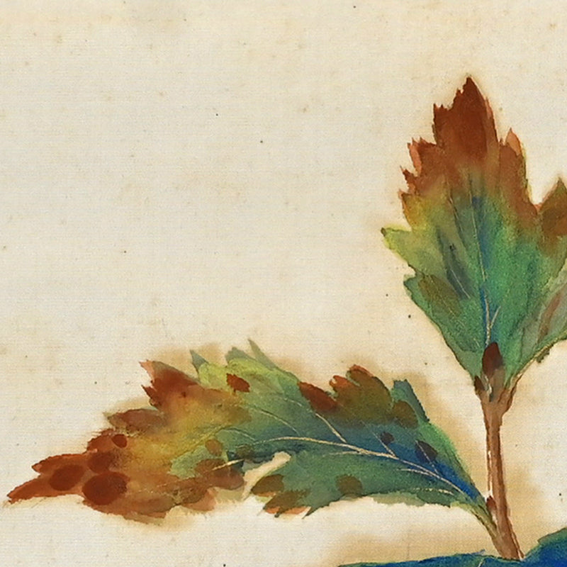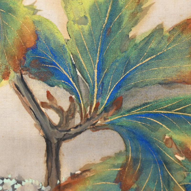 Sakakibara Shiho (1887 – 1971) was born in Kyoto and studied traditional Japanese painting at the Kyoto City School of Arts and Crafts, graduating in 1907, then moved on to the Kyoto Municipal School of Painting (mod University of Art). While at the school, his works were accepted (1909) and awarded (1911) into the Bunten National Exhibition. He graduated there in 1913. With his radical style garnering disapproval in official circles, in 1918, along with Tsuchida Bakusen, Irie Hakko, Ono Chikkyo and Murakami Kagaku founded the Kokuga Sosaku Kyokai. The organization changed its name to the Kokugakai in 1928, the same year Shiho took a position at his alma mater where he was awarded a professorship in 1937. He was awarded for his life’s work by the Nihon Geijutsu-in (Japan Art Academy) in 1962. Happily, the Kokuga-kai has outlived its founders, and is still exhibiting annually to this day. Works are held in the collections of the Seattle Art Museum, The Kyoto National Museum of Modern Art, the Adachi Museum as well as the Otani memorial Art Museum among others.