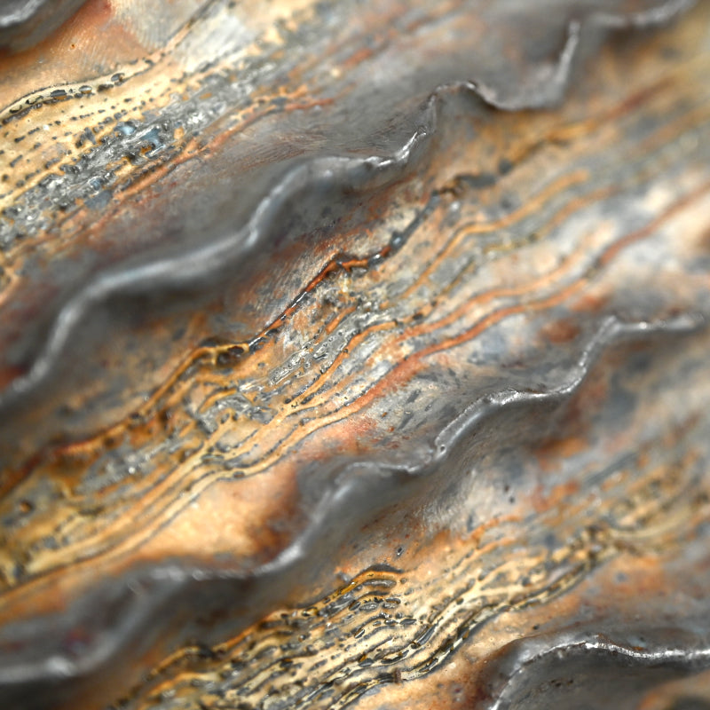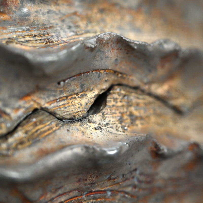 A large seed-shaped object by legendary female artist Koike Shoko. It is 27.5 x 17.5 x 17 cm (11 x 7 x 6-3/4 inches) and is in excellent condition, enclosed in a contemporary kiri-wood box.