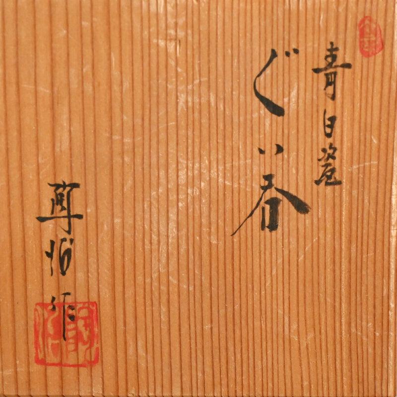 Fukami Sueharu is synonymous with seihakuji celadon. He has been displayed numerous times at the prestigious Nitten, Nihon Togei Ten (National Japanese Ceramic Exhibition) and Nihon Gendai Kogei Ten (National Japanese Modern Crafts Exhibition) among others. He is held in the Yale University Museum among others. For more information on this artist a quick web-search, or a look at the article highlighting his life in the March 2005 edition of Orientations Magazine will be enlightening. The list of museums holding his work is, in fact, much to long for this page, but includes the National Museums of Modern Art, Tokyo /Kyoto / and Osaka, the Metropolitan Museum of Art, NY, Brooklyn Museum, Museum of Fine Arts, Boston, Philadelphia St. Louis, Portland, Chicago, Minneapolis, Smithsonian, British Museum, Victoria & Albert Museum, Musée national de céramique, Sèvres, Musée des arts décoratifs, Paris, Hetjens Museum, Düsseldorf and the National Gallery of Australia among many others