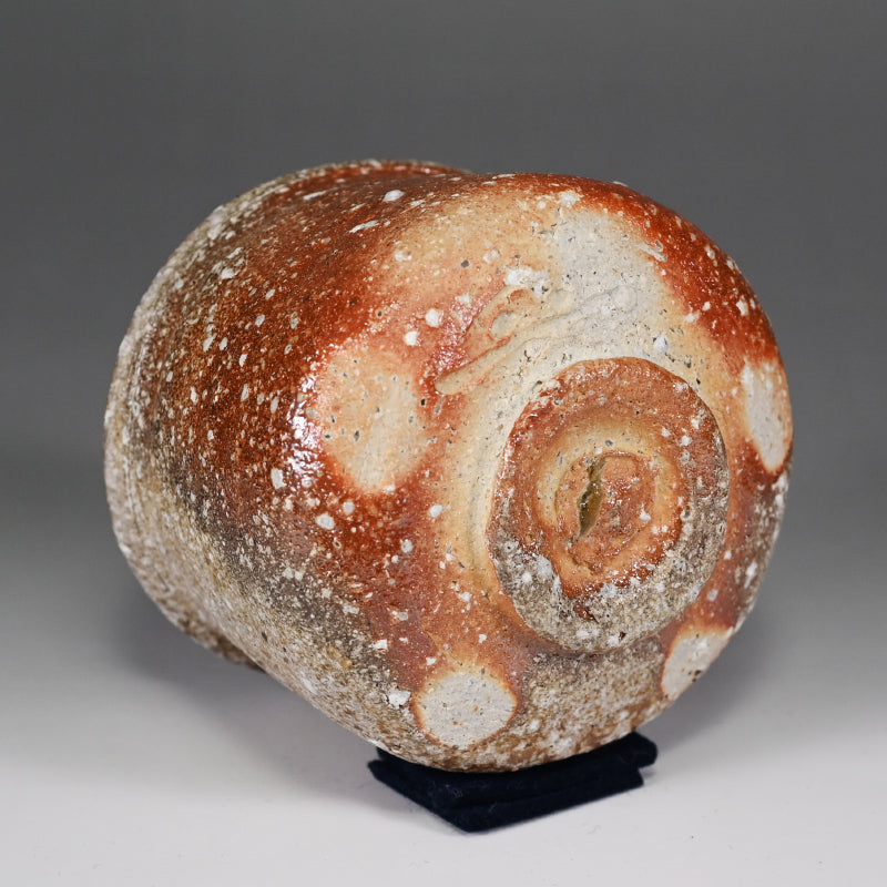 Otani Shiro was born in Shigaraki in 1936 and graduated the Prefectural School in the ceramics department in 1956, which he followed up with 4 years studying decorating techniques under Morioka Yutaro. He then moved to Kyoto where he studied at the Municipal Ceramics Research Facility, where he trained under Kiyomizu Kyubei, Shofu Eichi and Uchida Kunio before returning to Shigaraki to yet further his studies in design. He garnered his first award at the Shiga Prefectural Art Exhibition in 1962, as well as the Governor’s prize at the National Rodosha Bijutsu-Ten Exhibition. He took a position with an industrial kiln in Shigaraki in 1963, and began potting in his free time, exhibiting and being awarded at the Asahi Togeiten among others. In 1968, he left his position at the kiln, and in 1969 was first accepted into the National Traditional Crafts Exhibition (Nihon Dento Kogeiten). In 1973 he established his own kilns in Shigaraki, both an Anagama submerged kiln and a climbing kiln, and began learning from future Living National Treasure Shimizu Uichi. From there he participated in the Nihon Dento Kogei Ten (National crafts Exhibition) as well as innumerable private exhibitions both domestic and International, and was named an Intangible Cultural Asset of Shigaraki in 1990. His work is held in The Museum of Art in Atlanta, The Boston Museum of Fine Arts, the Brooklyn Museum of Art, the Fogg Art Gallery of Harvard as well as the Morikami Museum and Smithsonian among others. For an in depth look at this potter see the article by Rob Barnard in Ceramics Monthly volume 39 (Summer 1991).