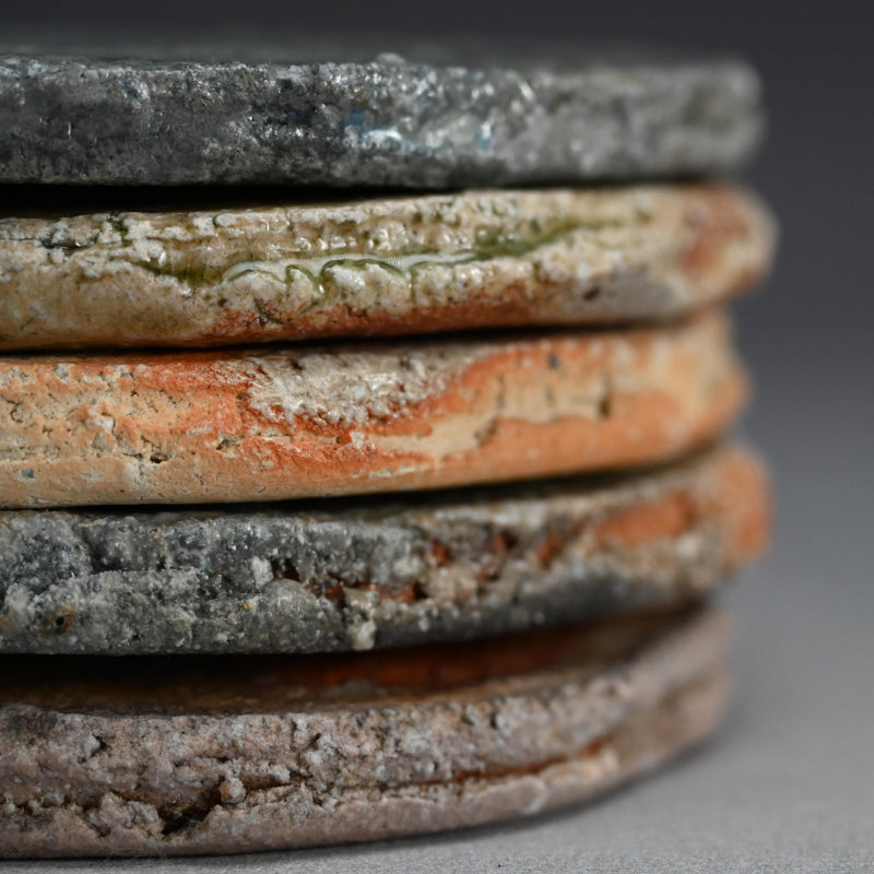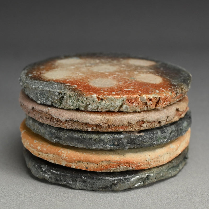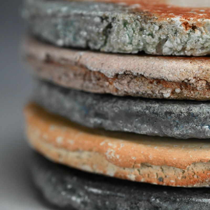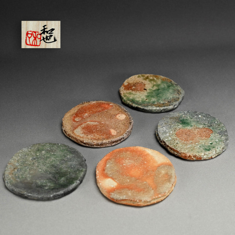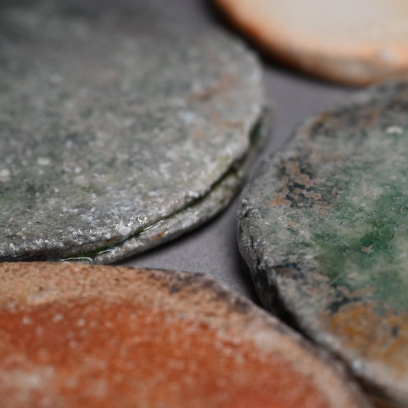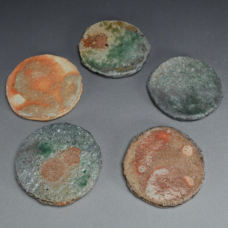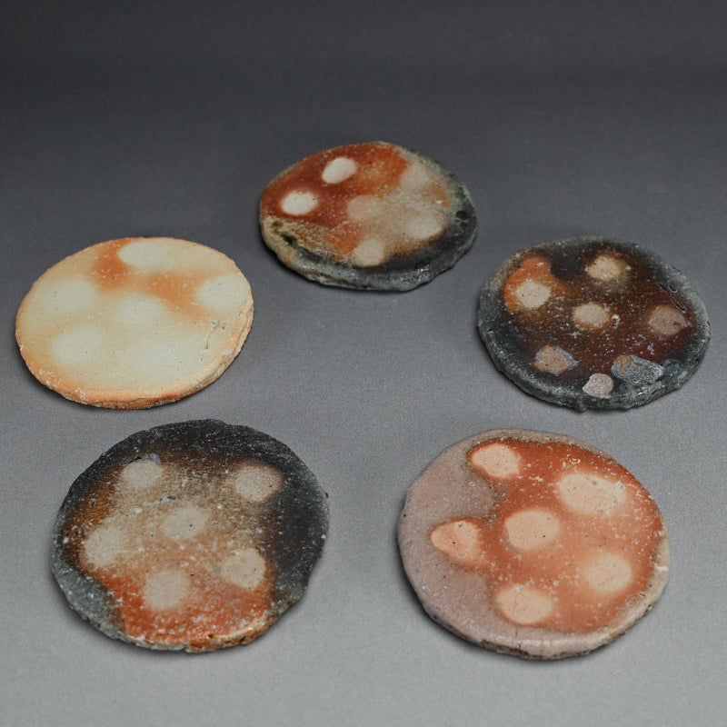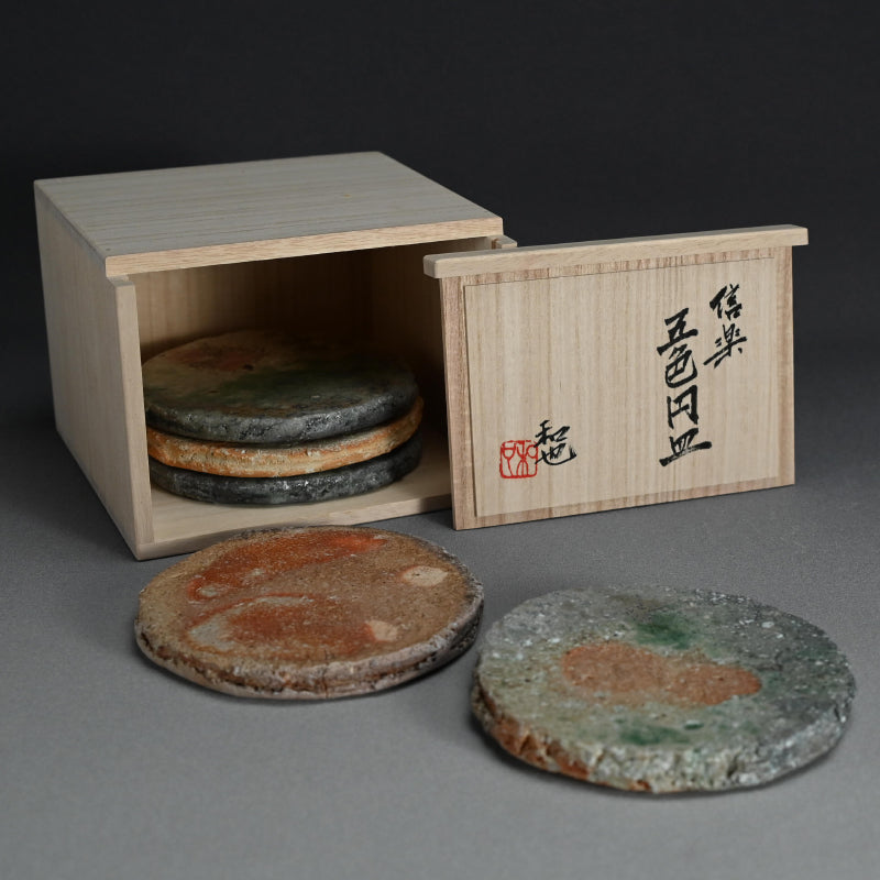 Shigaraki Goshoku set 5 Ash Blown Plates ー古谷 和也 “信楽五色円皿”