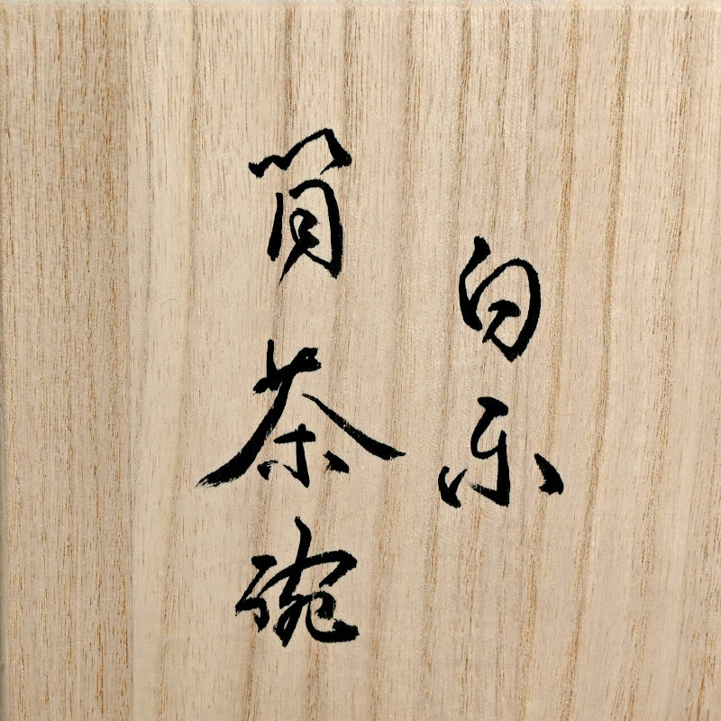 A white Raku Tea Bowl by Hashimoto Tomonari enclosed in the original signed wooden box titled Shiro-Raku Chawan. It is 11.5 cm (4-3/4 inches) diameter, 10.5 cm (4 inches) tall and in excellent condition, directly from the artist this winter.