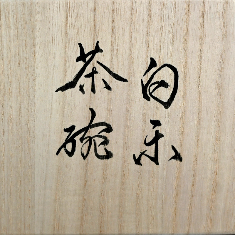 A white Raku Tea Bowl by Hashimoto Tomonari enclosed in the original signed wooden box titled Shiro-Raku Chawan. It is 12.5 x 11 x 11 cm (5 x 4-1/2 x 4-1/2 inches) and in excellent condition, directly from the artist this winter.