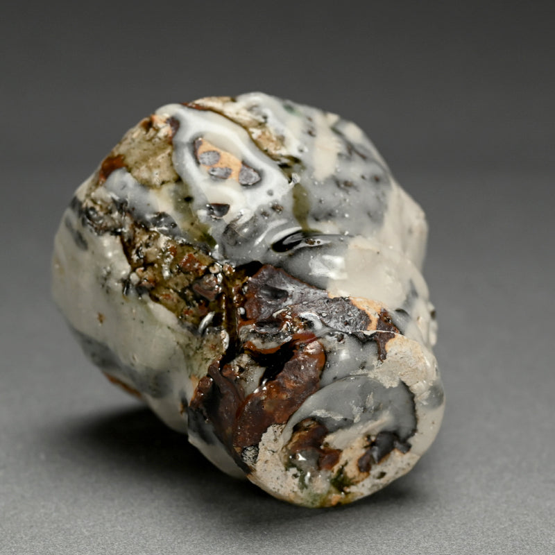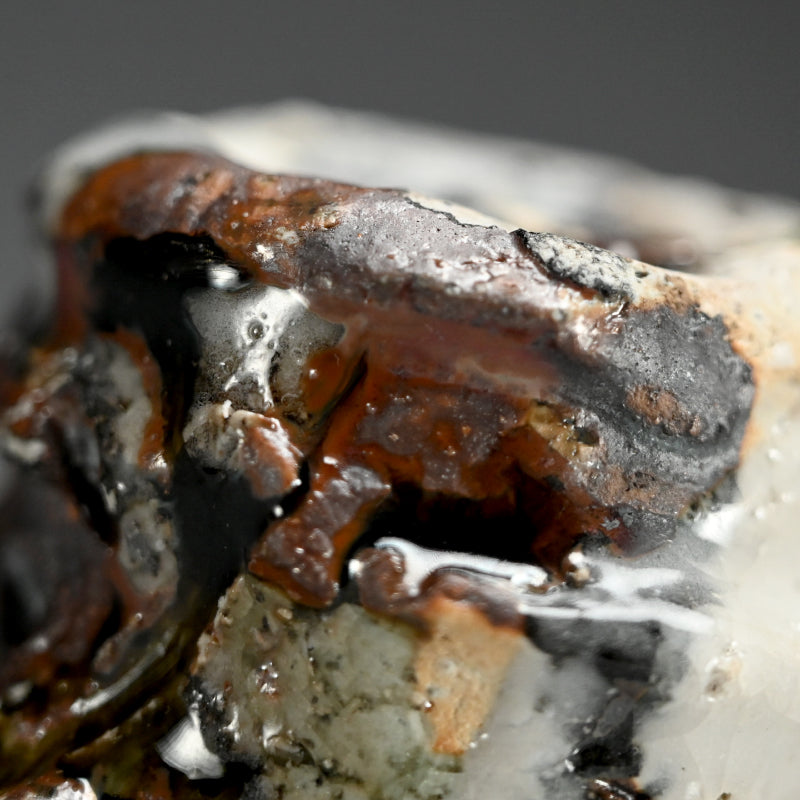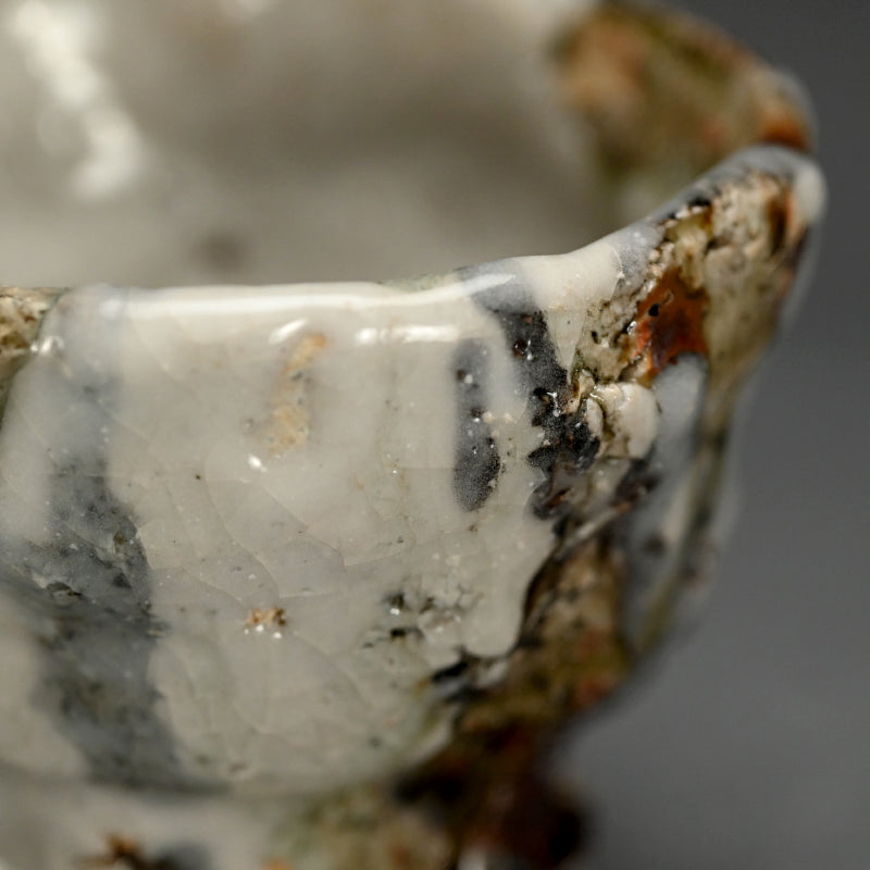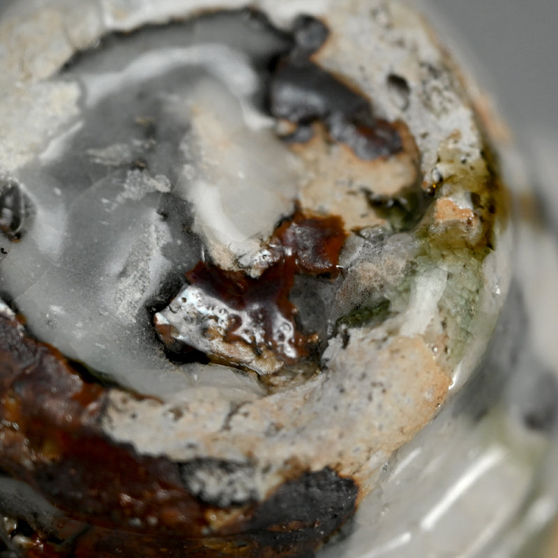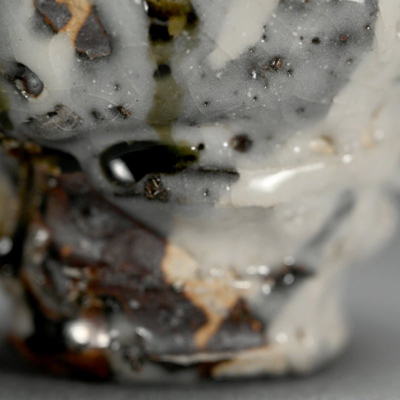 Murakoshi Takuma is one of those enigmas who simply lives to work with clay. He does not seek to make a living through pottery, but through his primal approach has earned a following which keeps his work in high demand. He was born in Aichi prefecture in 1954 and began his stroll down the pottery path in 1980 under the tutelage of Kyoto potter Umehara Takehira. Favoring very rough Shigaraki glaze, he established his own kiln in 1997 in the Kiyomizu pottery district of Kyoto, then moved to Nagaoka in 2002. Although eschewing the world of competitive exhibitions, he has been picked up by many of Japan’s preeminent galleries, including private exhibitions at the prestigious Kuroda Toen of Tokyo’s Ginza District.