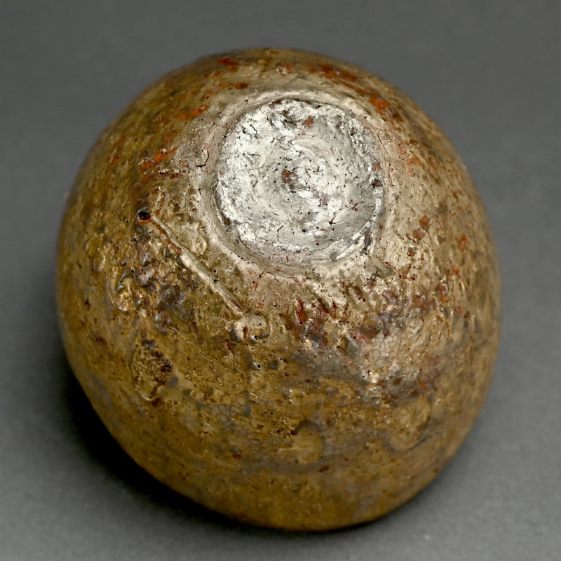 A fabulous silver earthen bowl by Kako Katsumi enclosed in the original signed wooden box titled Ginsai Wan. It is 13 x 11.5 x 9 cm (5-1/4 x 4-1/2 x 3-1/2 inches) and is in perfect condition, directly from the artist.