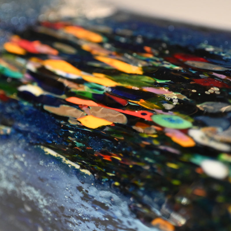 Okushima Keiji was born in Kyoto in 1977, and raised in rural Shiga prefecture just over the mountains from his birthplace. In 2000 he graduated Ritsumeikan University, and entered the Toyama Garasu Zokei Kenkyusho Glass Research Facility, graduating there in 2002. After working in a glass studio for several years, he established his own studio in Shiga in 2010. Since he has focused on the world of private exhibitions as his preferred venue. That said, he has been accepted into the Glass Craft Triennale in 2010, the National Craft Exhibition (Nihon Kurafuto Ten) in 2011, and received the Iwata prize at the Tableware Taishoten in 2012. 2013 saw his work in display in the Lansing At Gallery (US) and in Korea where he would be seen again in 2014 and 2015. From 2016 to 2019 his list of exhibitions is impressive, including exhibitions throughout Japan as well as New York and Korea.