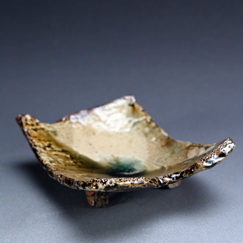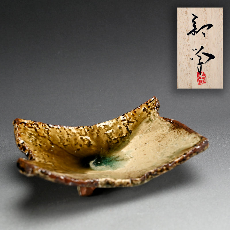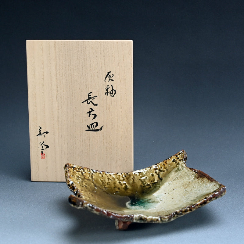 Slab Plate in Molten Ash by Iga Master ー新 学 "伊賀 長方皿"