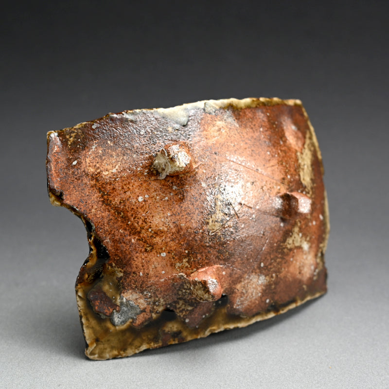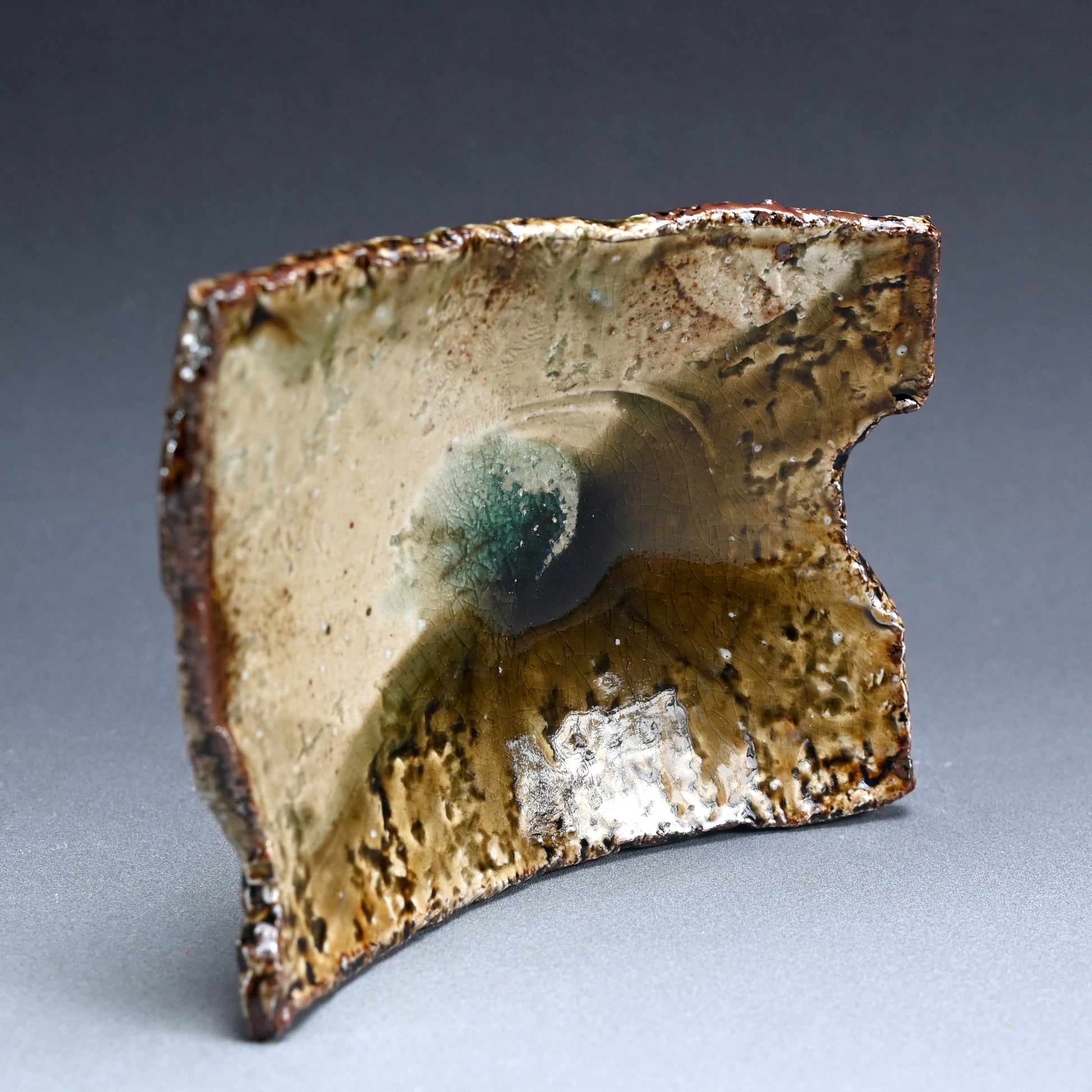 An exquisite torn slab of sunburnt clay in which has pooled natural ash glaze by Atarashi Manabu enclosed in the original signed wooden box titled Iga Sho-ho Sara. It is 23 × 6.5 × 7.5 cm (9 x 2-1/2 x 3 inches) and in new condition, directly from the artist.