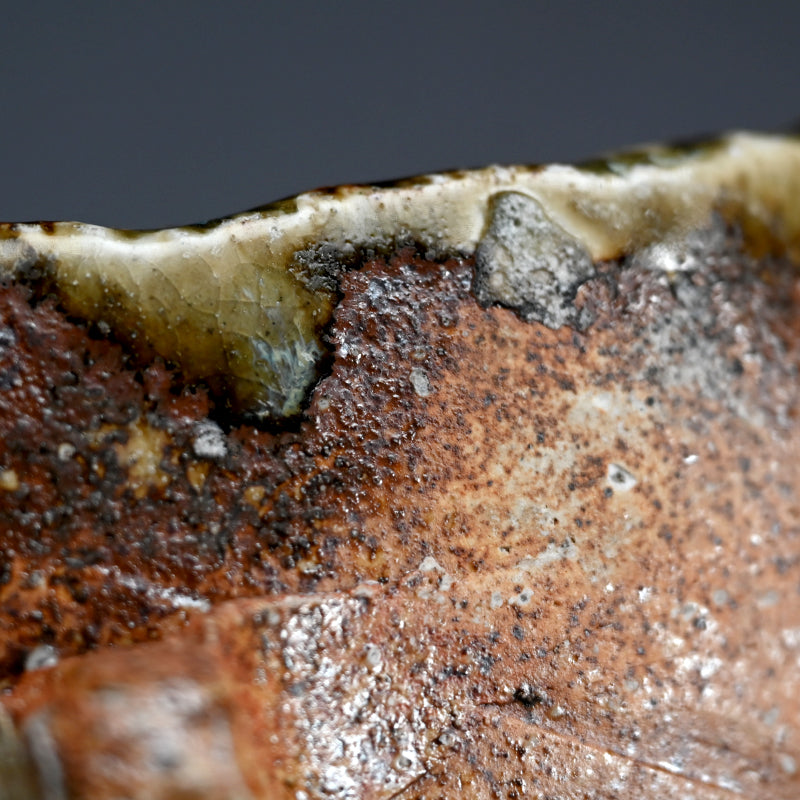 Atarashi Manabu has been growing in popularity as one of the leaders in the Iga pottery tradition since the first time I saw his work nearly 20 years ago when visiting the family showroom in Iga village. Born in 1973 in Osaka son of the second-generation artist and one of the leading revivalists of the Iga tradition in post war Japan, Atarashi Kanji. He graduated the literature department of Kansai University in 1995, moving to apprentice under his father a few years later. In 2002 he built his first anagama Kiln, and held his first of a multitude of solo exhibitions. Intensely fired multiple times to achieve the bidoro glass puddles and landscape effects which define his aesthetic, the geometric works add a contemporary sensibility to the traditional Iga style and transcend the realm of utilitarian crafts breaking into the sculptural domain. His work has proven innovative and challenging to the norm, taking his fathers tradition into the 21st century.