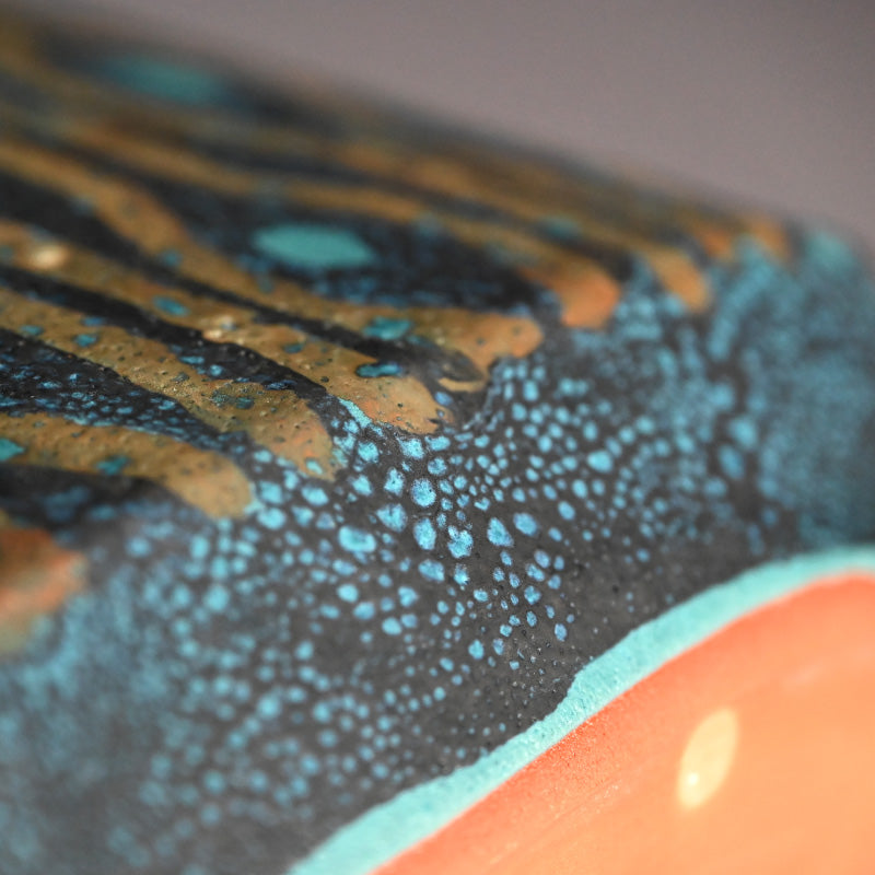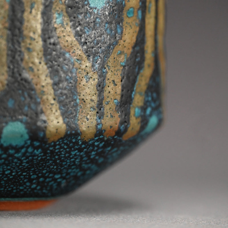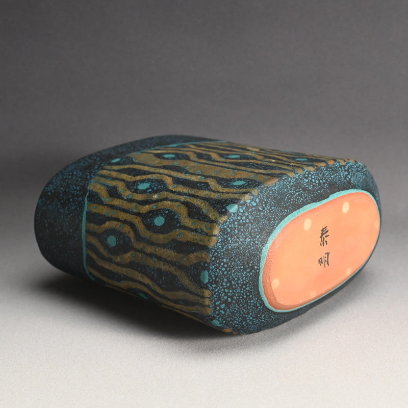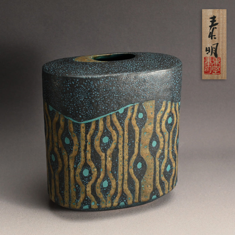 Morino Taimei was born in Kyoto in 1934, and was first accepted into the Nitten National Exhibition at a relatively young age in 1957 (a year before graduating the Kyoto Municipal University of Fine Art!). In 1960 he received the prestigious Hokutosho prize at the same National Exhibition. In the early 60s he worked as a guest professor at the University of Chicago. Upon his return to Japan his career began to lift off with a second Hokutosho Prize at the Nitten, followed by The governors prize and others at the Gendai Kogei Ten (Modern National Crafts Exhibition). He was subsequently selected for display at the Kyoto and Tokyo National Museums in 1972 and was accepted into the first Nihon Togei Ten that same year. Since his list of exhibitions and prizes has continued to grow, with subsequent selections in the Tokyo and Kyoto museums of Art, as well as exhibitions in Paris, Italy, America, Canada, Denmark and others. In 2007 he received the Japan Art Academy Prize, an award to a work of art similar in weight to the bestowing of Living National Treasure to an artist. This puts the artist in a small club, rare and important. For more information on the artist see Contemporary Japanese Ceramics, Fired with Passion by (Lurie/Chan, 2006) or the recent exhibition of works titled Generosity in Clay from the Natalie Fitz-gerald Collection.