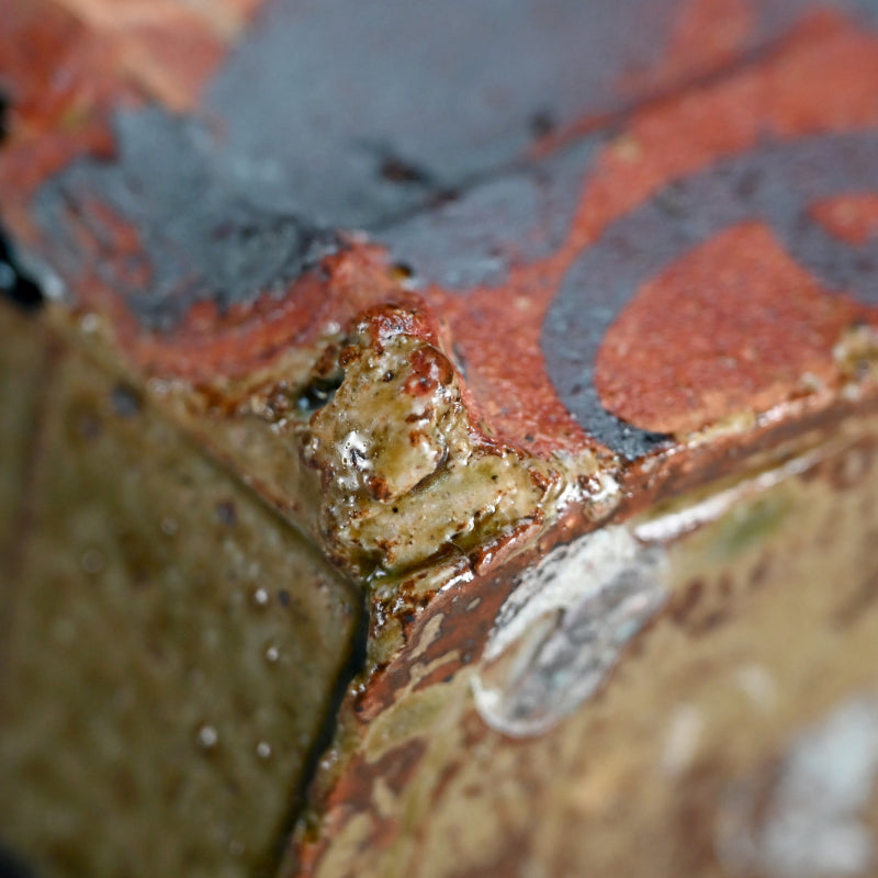 Takauchi Shugo was born in Tokyo in 1937, opening his kiln in Mashiko at the age of 31. He has exhibited at the Nihon Dento Kogeiten National Traditional Crafts Exhibition, Nihon Togeiten National Ceramics Exhibition and as well as Gendai Nihon Togeiten National Modern Ceramics Exhibition in addition to innumerable public and private exhibitions. He is recipient of the Order of Cultural Merrit from Tochigi Prefecture, and his works have been selected for international exhibitions (Paris, London, Denmark and America) and work by him is held in the V&A, The Art Gallery of New South Wales. For more see the Book “Japanese Studio Crafts” (1995) by Rupert Faulkner of “Fired with Passion” (2006) by Beatrice Chang and Samuel J Lurie.