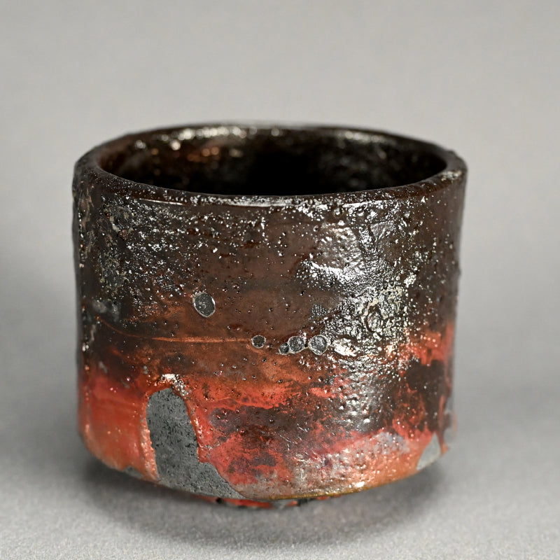 Stellar Black Raku Chawan ー橋本 知成 “楽焼窯変筒茶碗”
