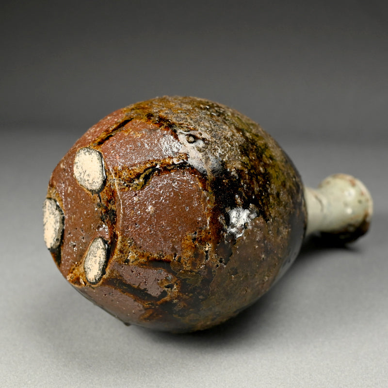 A fabulous Bottle form vase by legendary Nakagawa Jinenbo enclosed in the original signed wooden box titled Chossen Karatsu Tsuru Kubi Hanaire.  It is 12.5 cm (5 inches) diameter, 22.5 cm (9 inches) tall and in perfect condition.