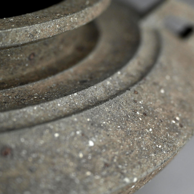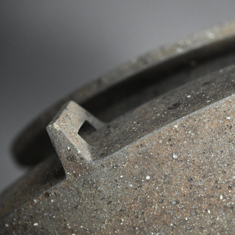 Born in 1975 in Tochigi Prefecture, Iguchi Daisuke graduated from Tohoku University of Art and Design in 1998, trained under Masayuki Uraguchi at the Tochigi Prefectural Ceramics Institute, and established his independent kiln in Mooka City in 2004. His signature Shuto or “rusty pottery” is hand-built from stoneware clay, coated with rice-husk ash or paste, and fired in reduction, then wire-brushed to achieve an oxidized, rust-like patina evocative of aged stone and moss. Geometric patterns in silver-slip glaze, applied through careful masking and multiple firings, create striking contrasts between weathered textures and refined form. Rooted in the Japanese aesthetic of sabi, his vessels convey a quiet power that fuses contemporary sensibility with a primordial atmosphere. Iguchi has exhibited internationally, including his first U.S. solo show Depth of Time (Joan B Mirviss Ltd, 2018) and a 2019 solo exhibition at Pierre Marie Giraud in Brussels. His many honors include the Judge’s Special Prize at the Mashiko Ceramic Art Exhibition (2008), the Governor of Tokyo Prize (2014), and the Grand Prize at the Paramita Ceramic Arts Exhibition (2019). His works are represented in major collections, including the Mashiko Museum of Ceramic Art, Ibaraki Ceramic Art Museum, Paramita Museum, Arkansas Arts Center, Herbert F. Johnson Museum of Art, Kalamazoo Institute of Arts, and Yale University Art Gallery.