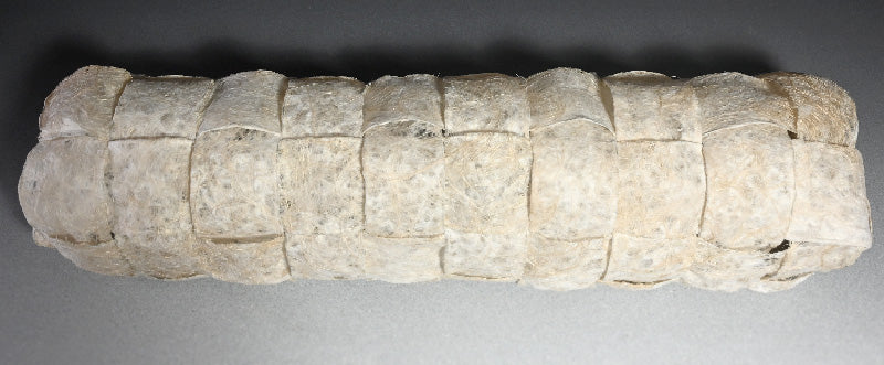A long wall mounted light of woven strips of Bamboo Fiber Paper on a Stainless frame by Kinoshita Yuri titled Tenkugumo II. It is 80 x 15 x 20 cm (x 6x 8 inches) and in perfect condition, directly from the artist made for this show during her sojourn on Awaji Island this Spring. It is lit by three 25 Watt (2 W) LED Lighting Strips featuring transparent flat cord.