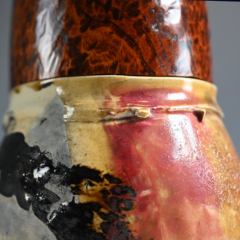 Koie Ryoji (1938-2020) was born in Tokoname and graduated the Tokoname industrial school before moving on to work at a tile factory in 1957, where he would lose two fingers in an industrial accident. Faced with this handicap, he entered the City Ceramics Research Facility in 1962 where he furthered his studies and his unique style began to coagulate. In 1966 he established his own studio. By the early 70s his work was garnering attention overseas and he has since been largely displayed and prized culminating in a lifetime with the Japan Ceramic Society Gold Award in 2008, the most prestigious of pottery prizes in Japan. Work by him is held in the collections of the National Museums of Modern Art in both Tokyo and Kyoto, Yamaguchi Prefectural Museum of Art, Hiroshima City Museum of Contemporary Art, Idemitsu Museum, The Museum of Fine Art in Gifu, Victoria & Albert Museum in London, Seoul Museum of Art in Korea, Dayton Art Institute, San Antonio Museum and the National Gallery of Victoria, Australia among many other public and private collections.
