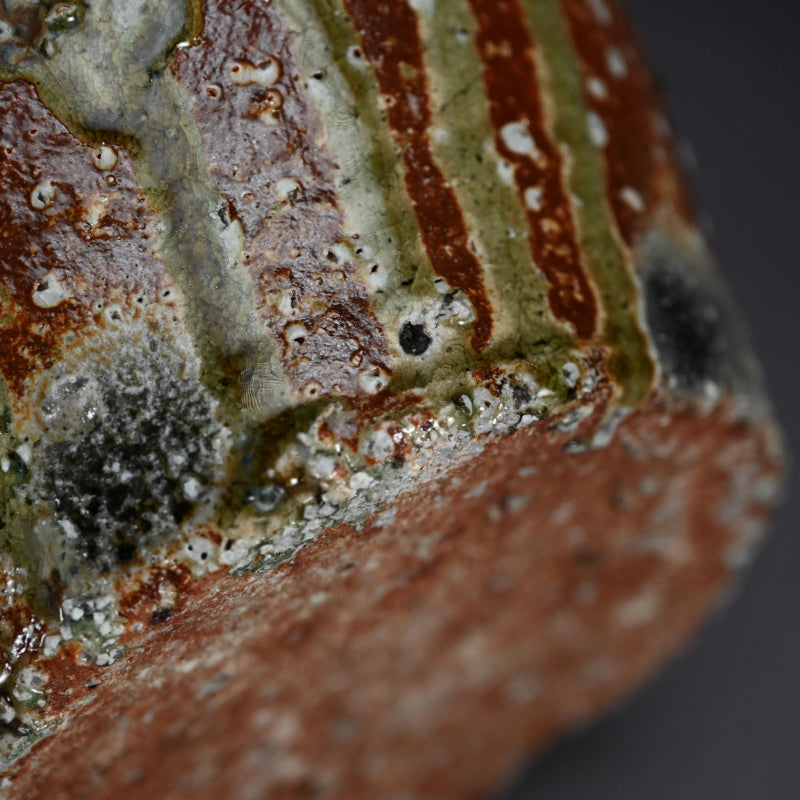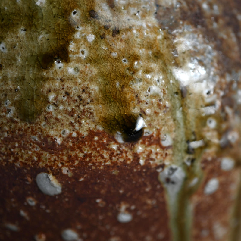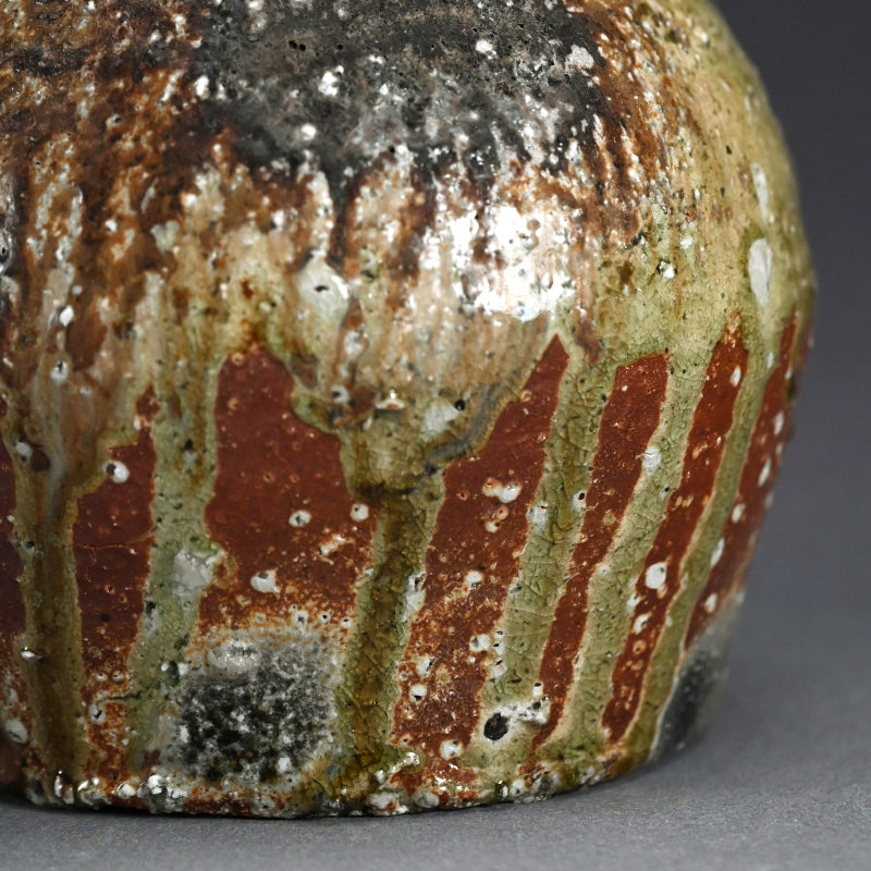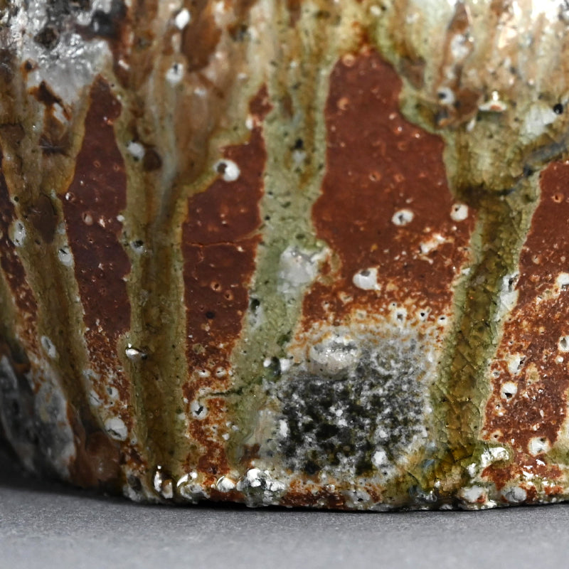 Tsujimura Kai (b. 1976, Nara Prefecture) is a leading contemporary Japanese ceramic artist whose bold, wood-fired vessels draw upon the traditions of Shigaraki, Iga, Bizen, Karatsu, Shino, and Oribe ware. Trained from 1994 under his father, the celebrated potter Tsujimura Shiro, Kai established his own kiln and studio in Sakurai around 2000, forging an independent path defined by large, powerful jars and tea wares and is celebrated for incorporating wood-fired, natural-ash glazes that embrace unpredictability. Unlike many contemporaries who tightly control kiln conditions, Kai “delights in the unexpected,” allowing chance and natural variation to shape his finished pieces. His work reflects the dramatic, sensual spirit of the Momoyama era while embracing spontaneity and chance. Widely exhibited in Japan and abroad his ceramics are represented in major collections such as the Metropolitan Museum of Art, the Smithsonian, and the Minneapolis Institute of Art.