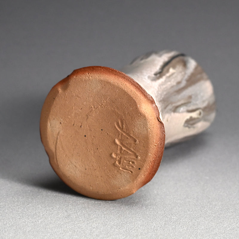 A beautiful vase by Long Term Japanese resident and pottery Richard Milgrim enclosed in the original signed wooden box titled Mimitsuki Hanaire. It is 10.5 x 11 x 25 cm (4 x 4-1/4 x 10 inches) and is in excellent condition.