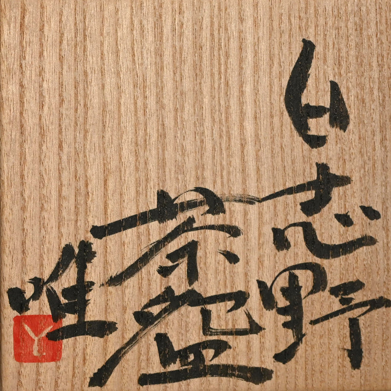 Imagine the rich green froth of maccha inside this haunting kutsu-gata bowl by Tsujimura Yii enclosed in the original signed wooden box titled Shiro-Shino Chawan. It is almost 13 cm (over 5 inches) diameter at the base, the mouth 14 x 11 cm (5-1/2 x 4-1/2 inches) and is 8.3 cm (3-1/4 inches) tall and in perfect condtion.