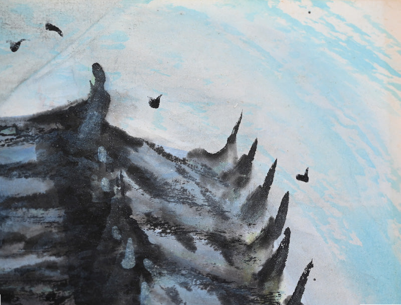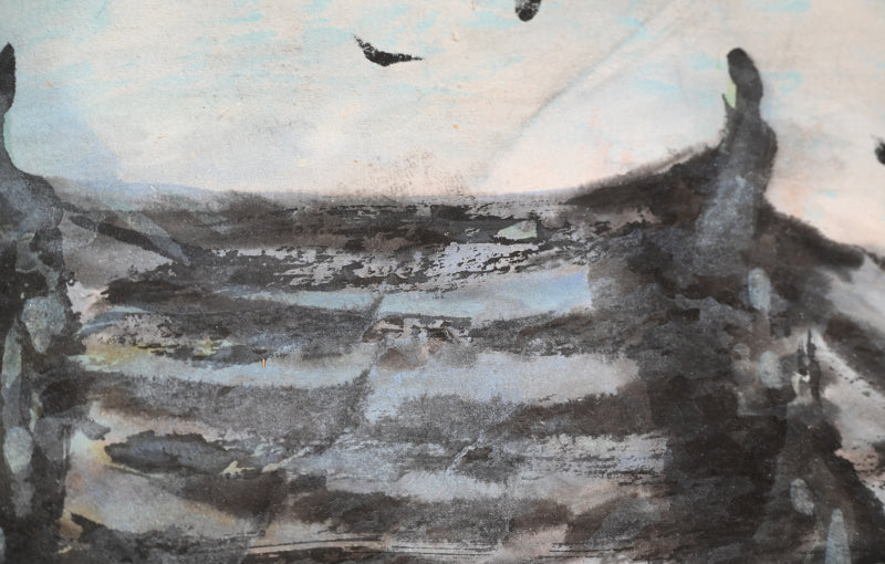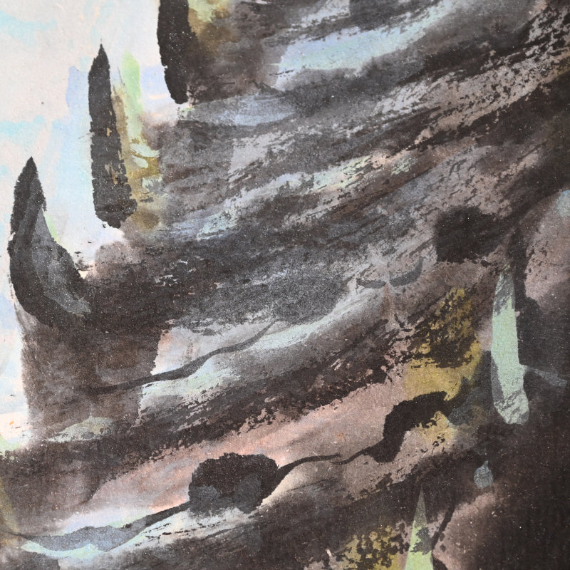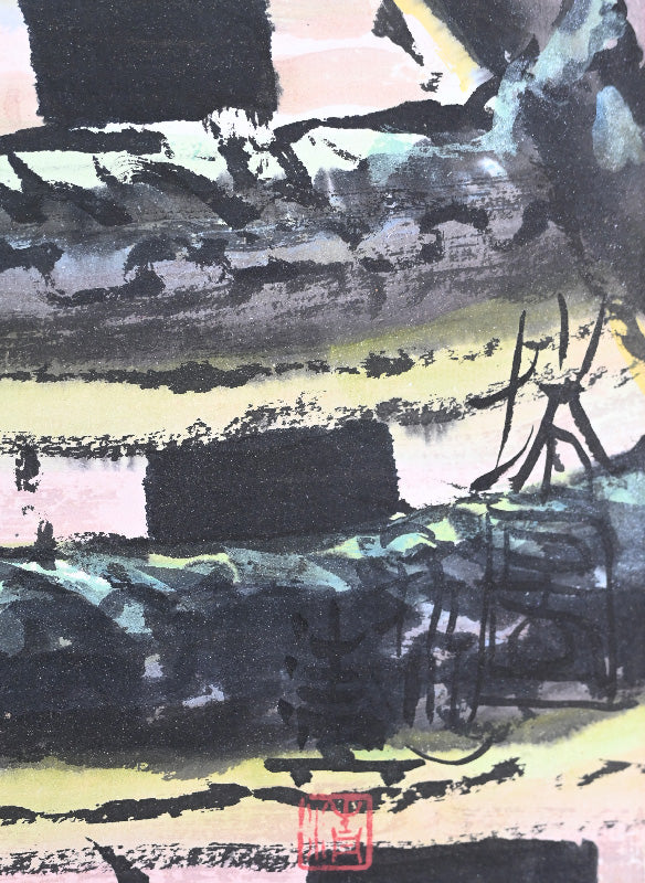 Nomura Seiroku was born in 1916 as the fourth son of a farming family in Yamanashi Prefecture. During his childhood, he was entrusted to relatives and spent his time drawing late into the night while working at a cotton mill. At the age of 17, he persuaded his parents and relatives to let him move to Tokyo, where he took on various jobs while attending the night school at Kawabata Art Academy where he formed lifelong friendships with other painteers such as Iwasaki Hajin, Komatsu Hitoshi, and Taniguchi Sango. He sought mastery of the Tsuketate technique. which involves using a rough brush held vertically to create a strong brushstroke that carves the framework of the painting without sketching.In 1943, Seiroku was drafted into the Yokosuka Navy. Around the same time, he married Tokiko Nomura, a daughter from an old family in Komatsu City, Ishikawa Prefecture, whom he had met during his art school days. As a result, he adopted the Nomura surname. In the early years of their marriage, Seiroku had little income, so in 1951, at the age of 35, he made a decisive move to focus on his artistic direction. He left his family and relocated to a cabin by Shibireko Lake in Yamanaka, Yamanashi Prefecture. There, he spent four ascetic years perfecting his "Tsuketate" technique. During this period, Nomura began creating cover illustrations for the haiku magazine "Kira" and held his first solo exhibition in Yamanashi Prefecture. He also showcased his works at various exhibitions, including the Shinseisaku Art Society Exhibition and the Japan Independent Exhibition. In 1955, after returning to his family in Komatsu City, he moved his studio to Kashiwa City, Chiba Prefecture, to facilitate exhibitions and negotiations with art dealers in Tokyo. In the 1960s, Nomura produced outstanding works using flat and thick painting techniques. From the 1970s onwards, his brushwork became more free and spontaneous, and he began incorporating his own haiku into his paintings, evolving towards a more literati painting style. Work by him is held in the Tokyo National Museum of Modern Art, the Wakayama Prefectural Museum of Art and the Yamanashi Prefectural Museum of Art where a major retrospective was held in 2000.