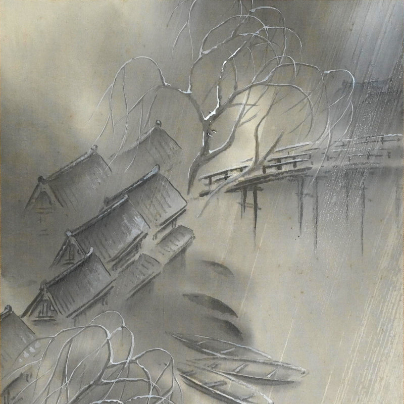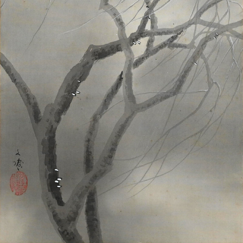 Hayashi Bunto (1882-1966) studied painting under Yamamoto Shunkyo, and became a preeminent Shijo school artist of the early 20th Century.  Disillusioned with the Juried exhibitions, along with Kikuchi Keigetsu and Iguchi Kashu, he was instrumental in the founding of the Nihon Jiyu Gakkai.  He is held in the collection of the Museum of Modern Art, Kyoto, as well as many private collections.