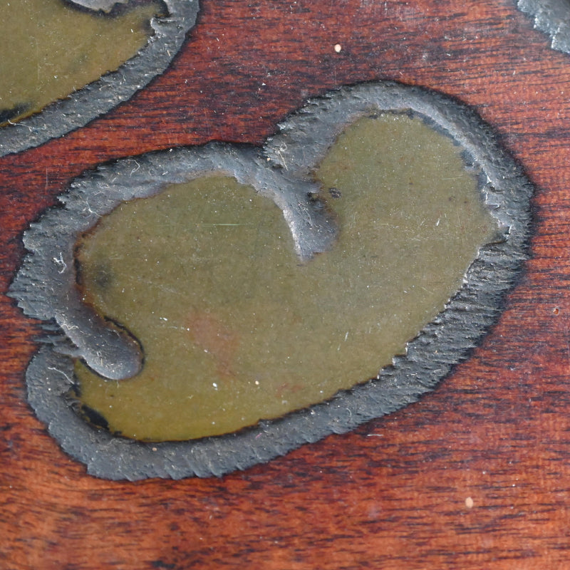 A wooden tray by Yabe Takayoshi carved with an auspicious design by Shimizu Hian with the phrase Buji-sokusai. Buji Sokusai is a traditional Japanese expression meaning literally: (buji) “without incident” or “safe,” and Sokusai “free from illness,” or “in good health.” It often appears in Buddhist or Shintō contexts, prayers, or New Year’s greetings, expressing the hope to live through the year without calamity or illness. The tray is 27 cm (11 inches) diameter and in excellent condition.